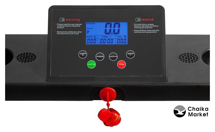 электрическая беговая дорожка, без регулировки угла наклона, полотно: 42×112 см, скорость движения: 0–8 км/ч, 8 программ тренировок