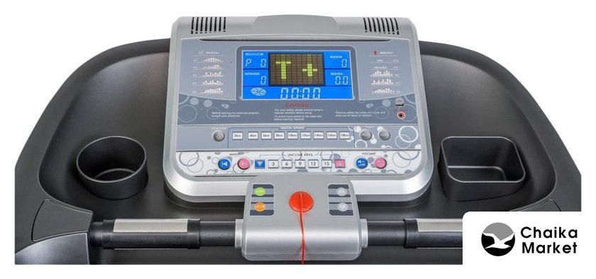 электрическая беговая дорожка, полотно: 60×161 см, скорость движения: 0.3–20 км/ч, 109 программ тренировок
