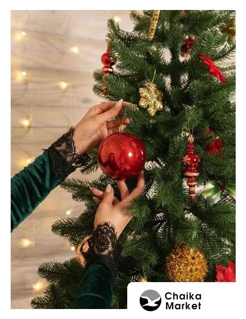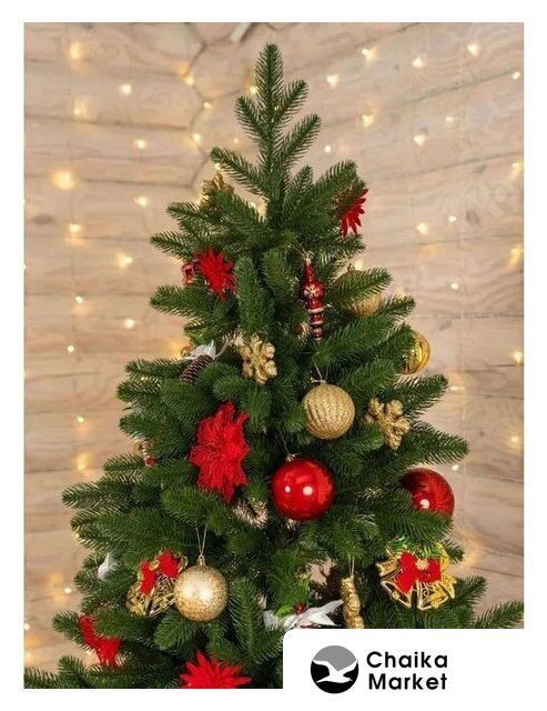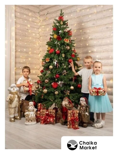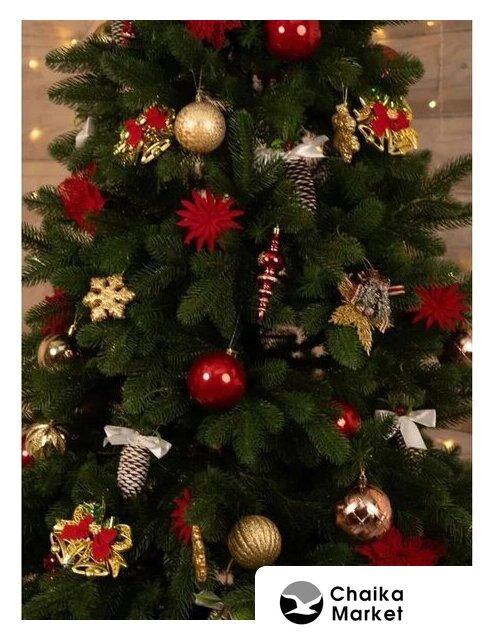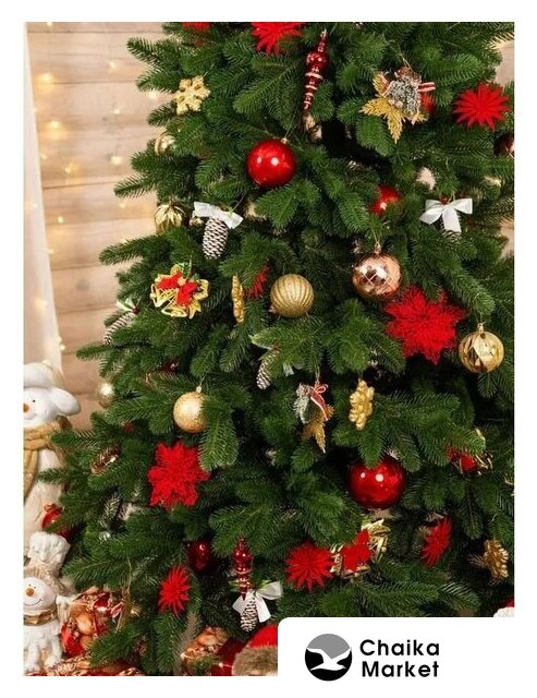 искусственная ель, литая+ПВХ, 2.4 м, цвет зеленый, шишки