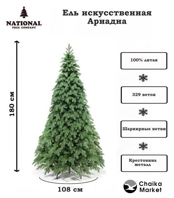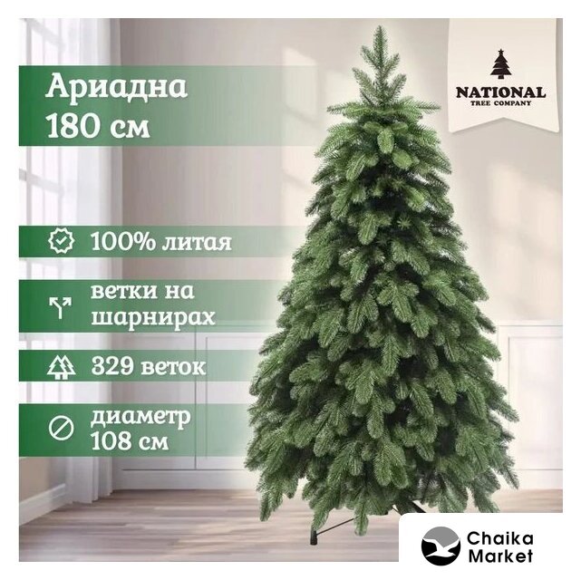 искусственная ель, литая, 1.9 м, цвет зеленый