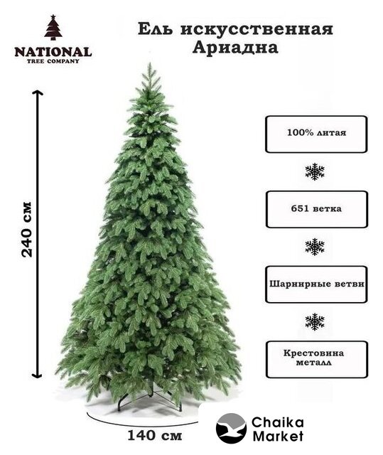 искусственная ель, литая, 2.4 м, цвет зеленый