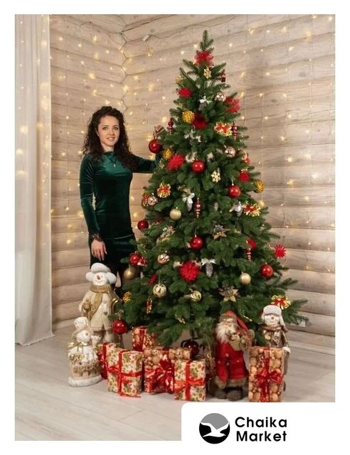 искусственная ель, литая, 2.1 м, цвет зеленый, шишки