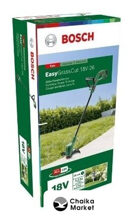 аккумуляторный, оснастка: леска, ширина скашивания: 26 см, 18 В, аккумулятор в комплекте, 2.3 кг