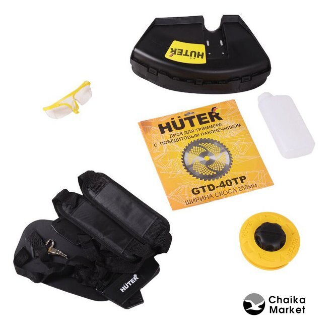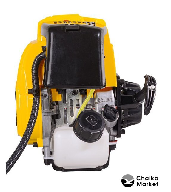 Комплектация | - Двигатель в сборе — 1 шт.- Штанга в сборе с редуктором — 1 шт.- Защитный кожух — 1 шт.- Режущий диск — 1 шт.- Катушка с леской — 1 шт.- Рукоятки управления (левая и правая) — 1 шт.- Наплечный ремень — 1 шт.- Комплект ключей – 1 шт.- Очки - Паспорт продукции — 1 шт. |