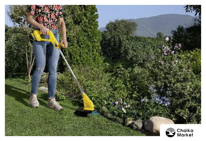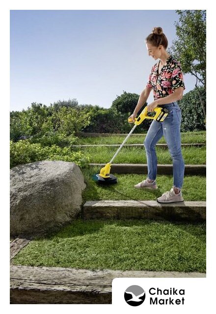 аккумуляторный, оснастка: пластиковый нож, ширина скашивания 24 см, вес 1.8 кг