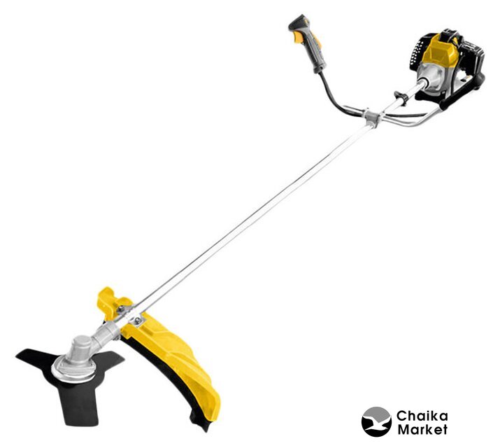 бензиновый, двухтактный, 4500 Вт, оснастка: леска+металлический нож, ширина скашивания: 25.5-40 см, легкий пуск, 6.1 кг