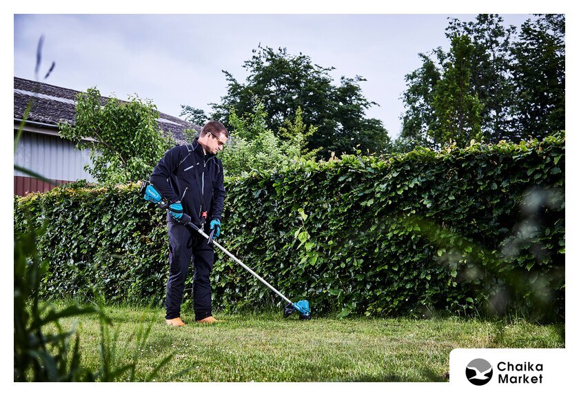аккумуляторный, оснастка: леска+металлический нож, ширина скашивания 23-35 см, вес 5.3 кг