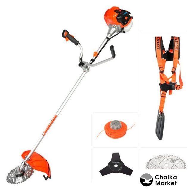 бензиновый, 1500 Вт, оснастка: металлический нож+металлический диск+леска, ширина скашивания 255-430 см, вес 7.6 кг