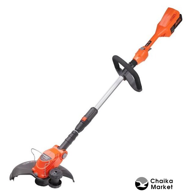 | Комплектация | - Триммер;- Защитный кожух;- Защитная скоба;- Передняя рукоятка;- Опорный ролик с крепежом;- Аккумуляторная батарея;- Зарядное устройство;- Запасная леска;- Инструкция. |