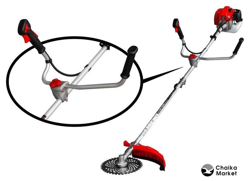 бензиновый, двухтактный, 1500 Вт, оснастка: леска+металлический диск, ширина скашивания: 25.5 см, 7 кг
