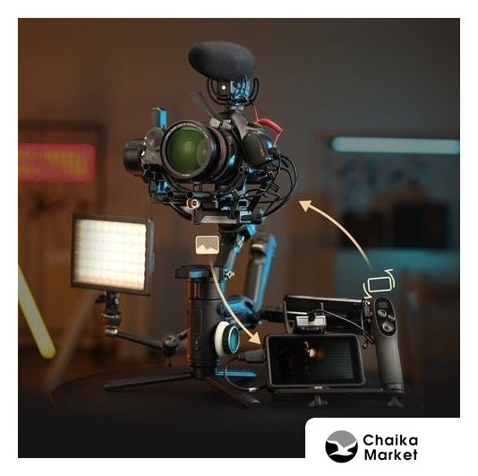 | Комплектация | • Рукоятка SmartSling• Быстросъемная площадка• Подставка под корпус камеры• Штатив • Упор для объектива• Удлинительная планка плеча• Кабель зарядки USB-C• Кабель управления камерами Canon (с USB-C на MicroUSB и с USB-C на MiniUSB)• Кабель управления камерами Panasonic (с USB-C на USB-C)• Кабель управления камерами Sony (с USB-C на MULTI)• Зарядное устройство• 3 аккумулятора типа 18650• Чехол для кабелей• Кейс для хранения |