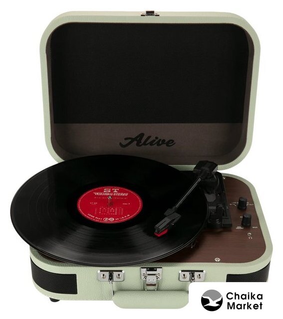 ременной привод, 33 1/3, 45 об/мин, электронное переключение скоростей, встроенный фонокорректор, тонарм поворотный (прямой), картридж, цвет зеленый