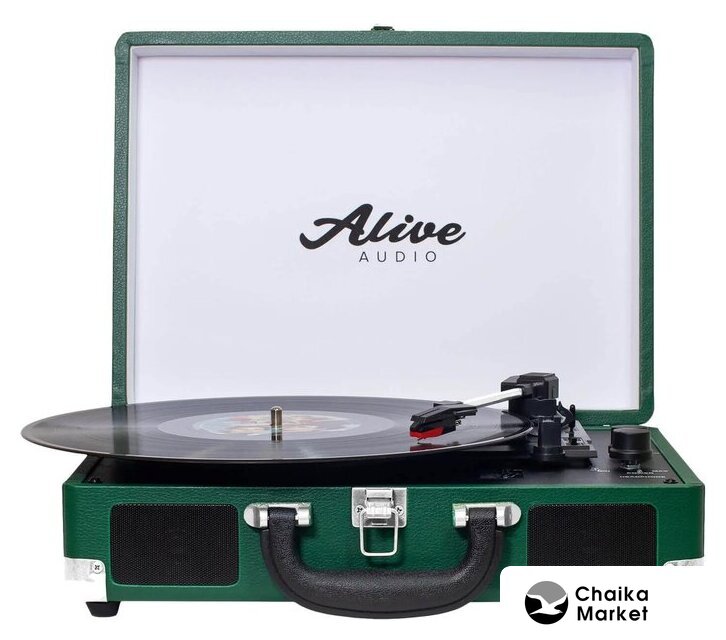ременной привод, 33 1/3, 45 и 78 об/мин, электронное переключение скоростей, встроенный фонокорректор, тонарм поворотный (прямой), картридж, цвет салатовый