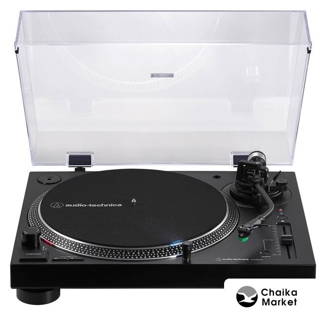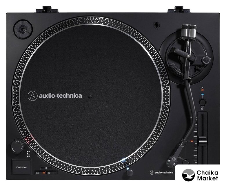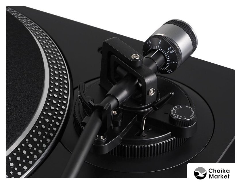 прямой привод, 33 1/3, 45 и 78 об/мин, электронное переключение скоростей, встроенный фонокорректор, тонарм поворотный (изогнутый), картридж с подвижным магнитом (MM), цвет черный