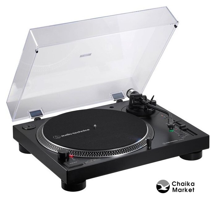 ременной привод, 33 1/3, 45 об/мин, электронное переключение скоростей, встроенный фонокорректор, тонарм поворотный (прямой), картридж с подвижным магнитом (MM), цвет черный