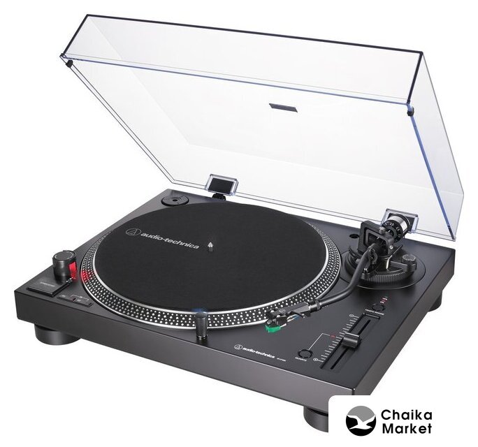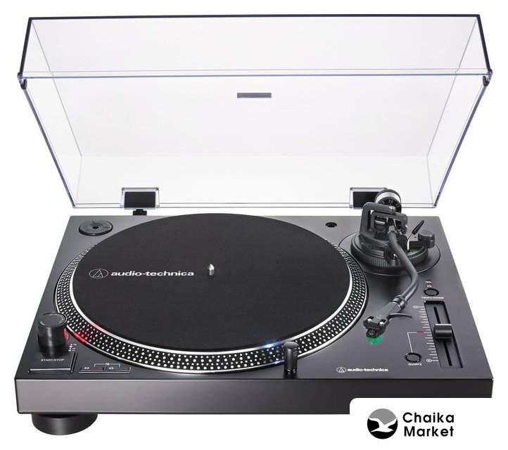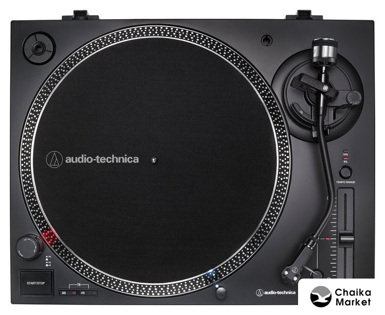 ременной привод, 33 1/3, 45 об/мин, встроенный фонокорректор, тонарм поворотный (прямой), картридж с подвижным магнитом (MM), цвет черный