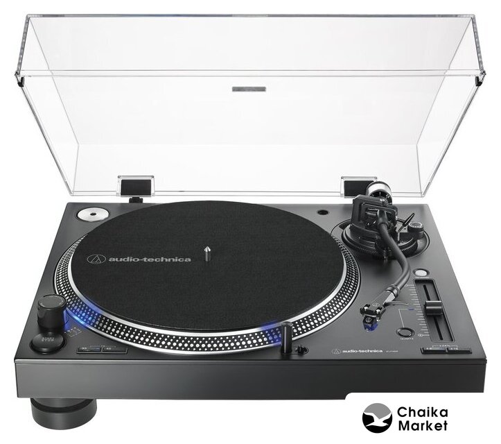 ременной привод, 33 1/3, 45 и 78 об/мин, электронное переключение скоростей, встроенный фонокорректор, тонарм поворотный (прямой), картридж с подвижным магнитом (MM), цвет черный