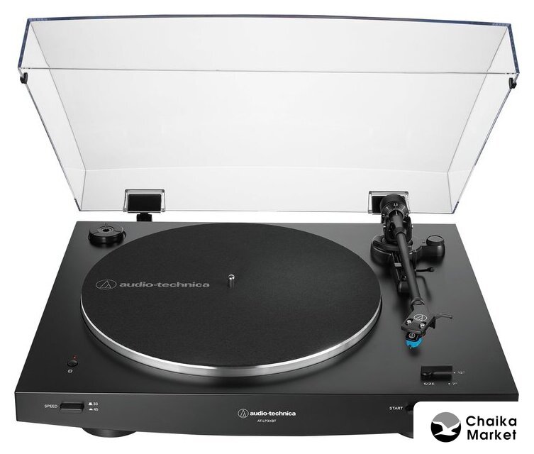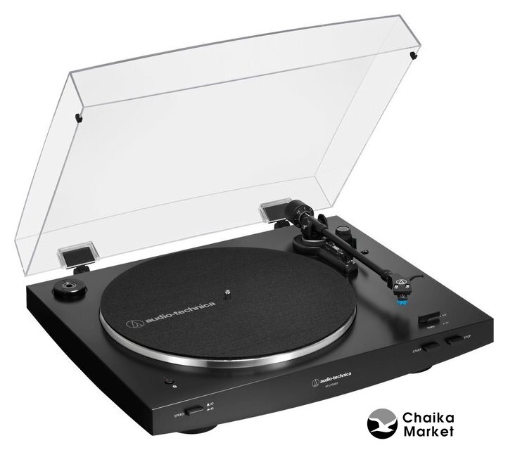 ременной привод, 33 1/3, 45 об/мин, ручное переключение скоростей, встроенный фонокорректор, тонарм поворотный (прямой), картридж с подвижным магнитом (MM), цвет черный