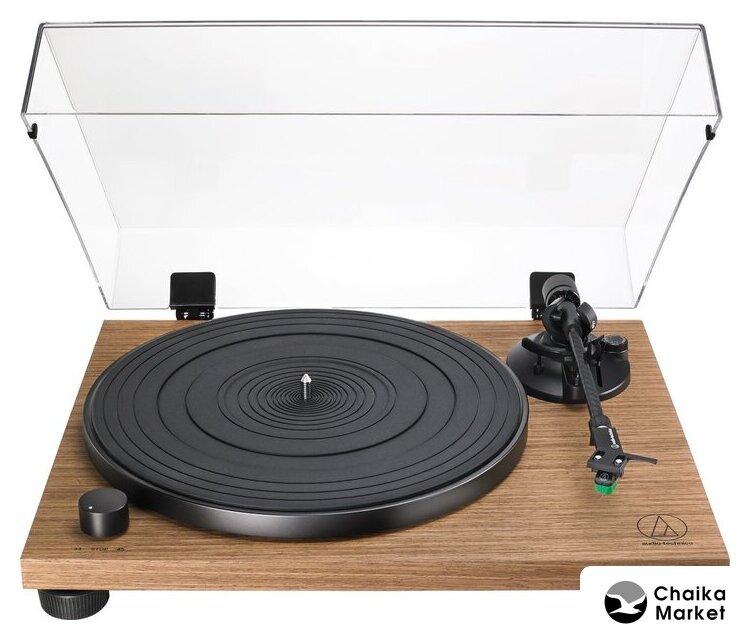 ременной привод, 33 1/3, 45 об/мин, электронное переключение скоростей, встроенный фонокорректор, тонарм поворотный (прямой), картридж с подвижным магнитом (MM), цвет коричневый