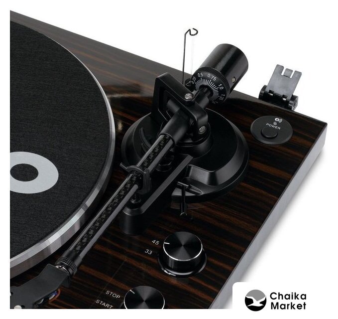 прямой привод, 33 1/3, 45 и 78 об/мин, электронное переключение скоростей, встроенный фонокорректор, тонарм поворотный (изогнутый), картридж с подвижным магнитом (MM), цвет черный