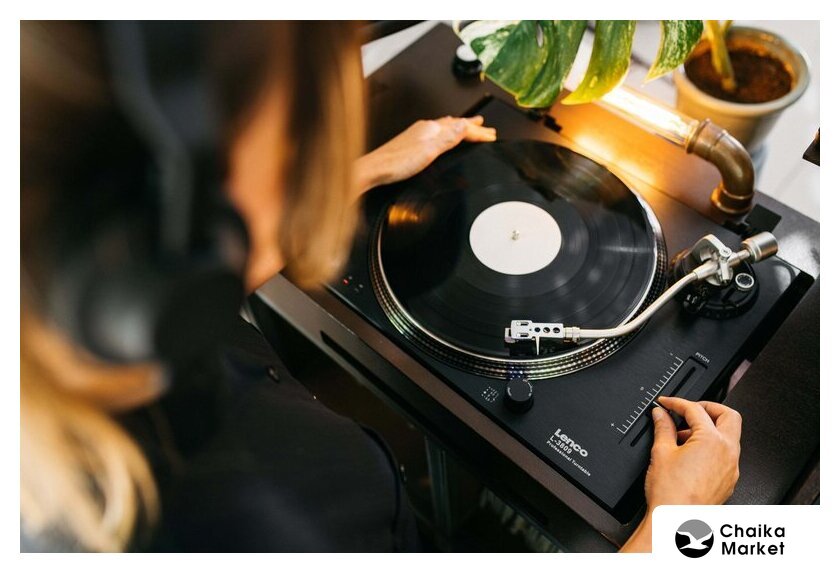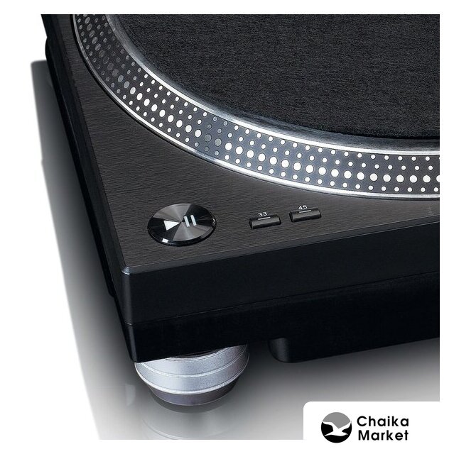 ременной привод, 33 1/3, 45 об/мин, ручное переключение скоростей, встроенный фонокорректор, тонарм поворотный (прямой), картридж с подвижным магнитом (MM), цвет черный