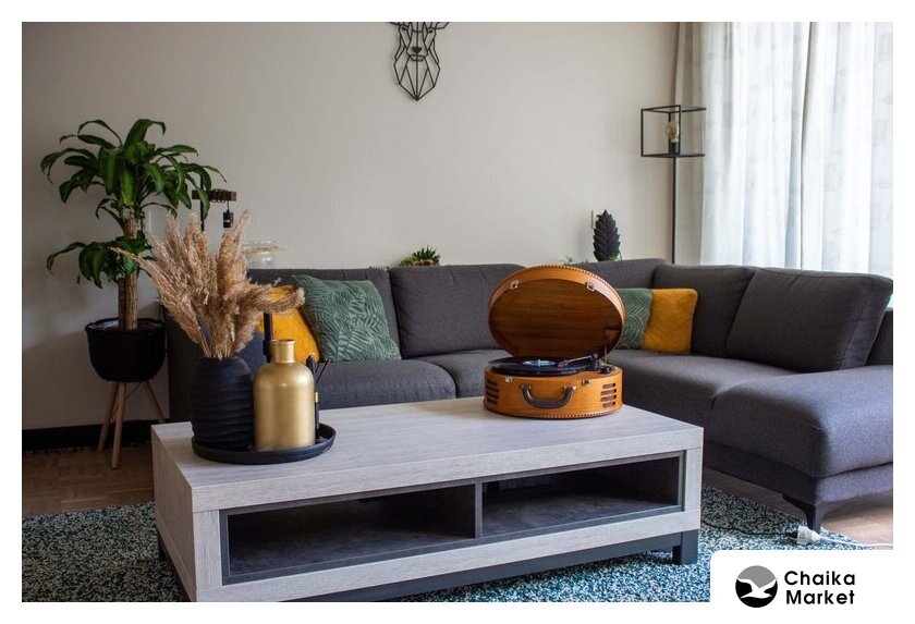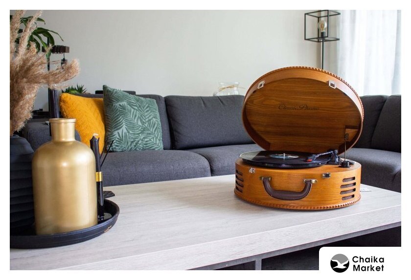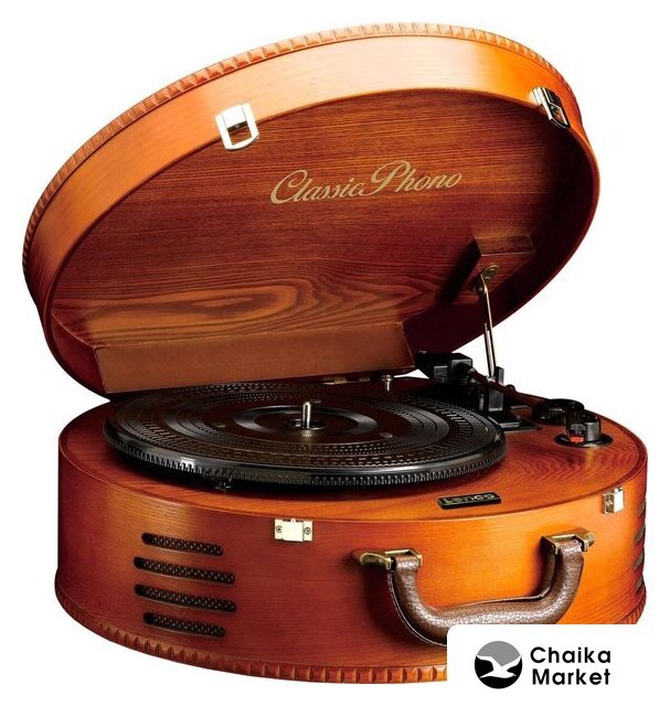 ременной привод, 33 1/3, 45 об/мин, ручное переключение скоростей, встроенный фонокорректор, тонарм поворотный (прямой), картридж с подвижным магнитом (MM), цвет коричневый/черный