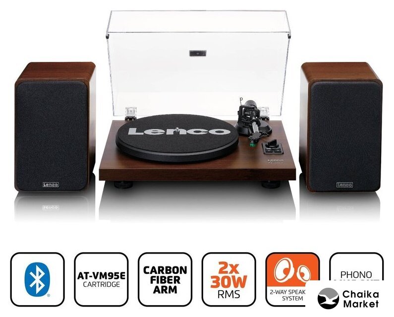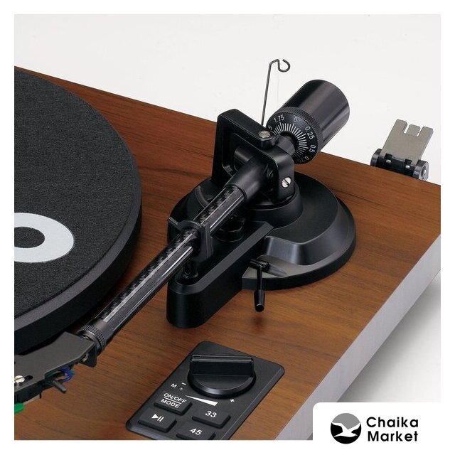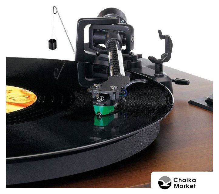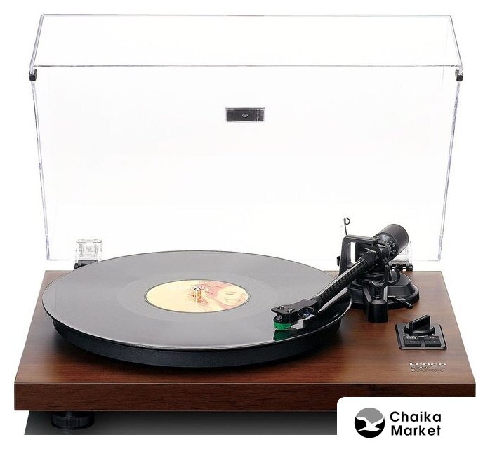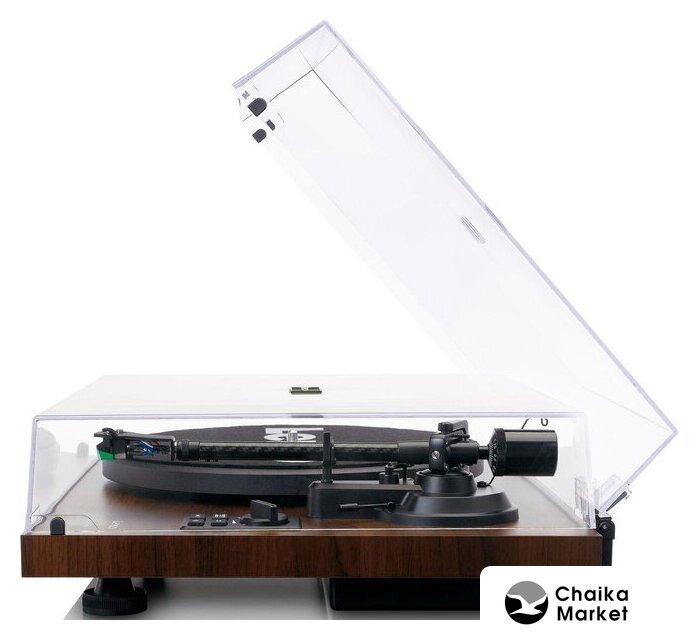 ременной привод, 33 1/3, 45 об/мин, электронное переключение скоростей, встроенный фонокорректор, тонарм поворотный (прямой), картридж с подвижным магнитом (MM), цвет коричневый