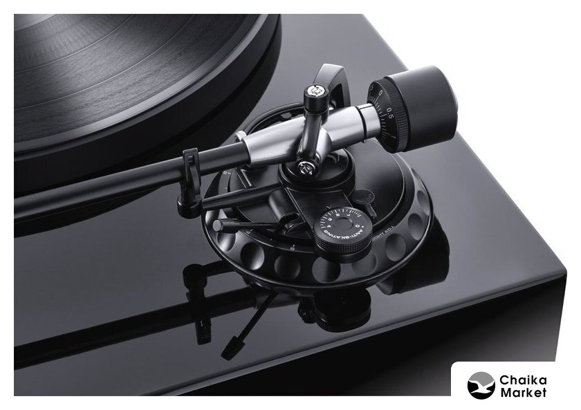 ременной привод, 33 1/3, 45 об/мин, ручное переключение скоростей, тонарм поворотный (изогнутый) с подвижным магнитом (MM), цвет черный