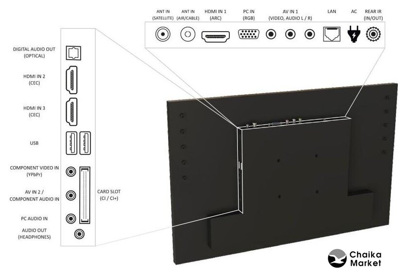 23.8" 1920x1080 (Full HD), встраиваемый, частота матрицы 60 Гц, Smart TV (Android), Wi-Fi