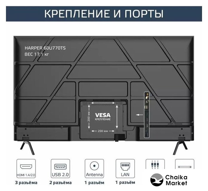 Крепление VESA | 200x200 |