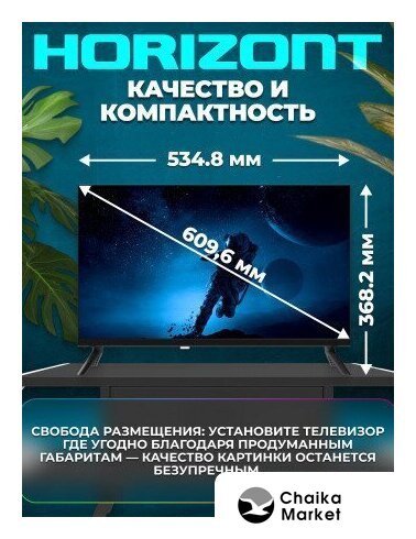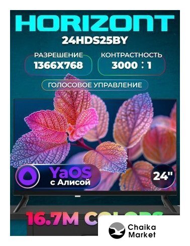 23.8" 1366x768 (HD), частота матрицы 60 Гц, Smart TV (Салют ТВ), Wi-Fi, смарт пульт