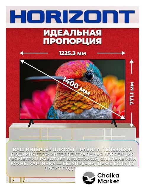 55" 3840x2160 (4K UHD), матрица VA, частота матрицы 60 Гц, Smart TV (Яндекс.ТВ), Wi-Fi, смарт пульт