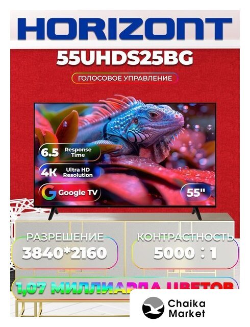 50" 3840x2160 (4K UHD), частота матрицы 60 Гц, Smart TV (Google TV), HDR10, Dolby Vision, Dolby Atmos, Wi-Fi, смарт пульт