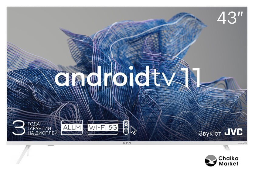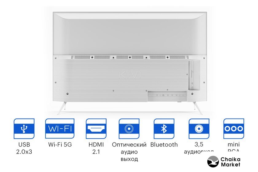 | Пульт в комплекте | KIVI RC60 – серый с голосовым управлением и кнопками Netflix, YouTube |
