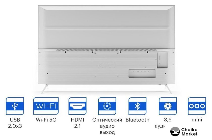 | Пульт в комплекте | KIVI RC60 – серый с голосовым управлением и кнопками Netflix, YouTube |
