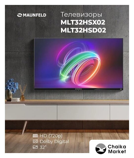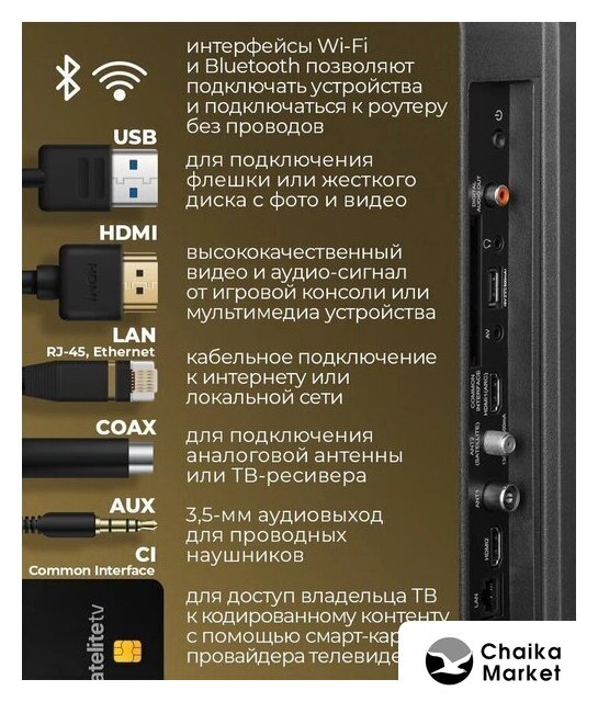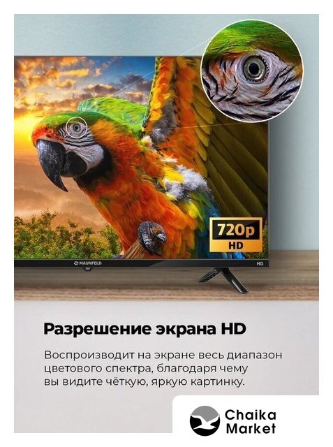32" 1366x768 (HD), матрица VA, частота матрицы 60 Гц, Smart TV (Android), Wi-Fi