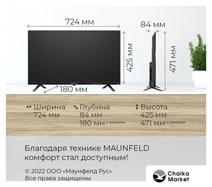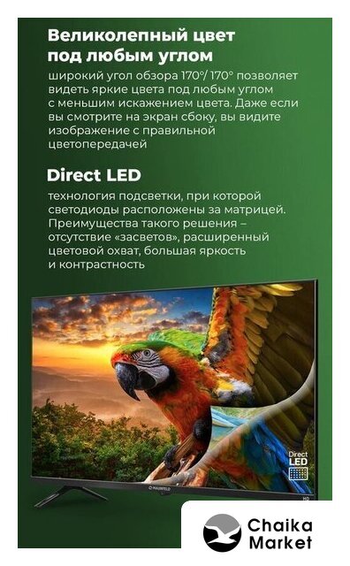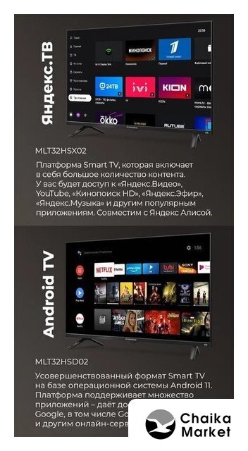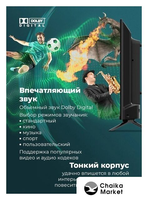 32" 1366x768 (HD), матрица VA, частота матрицы 60 Гц, Smart TV (Яндекс.ТВ), Wi-Fi, смарт пульт