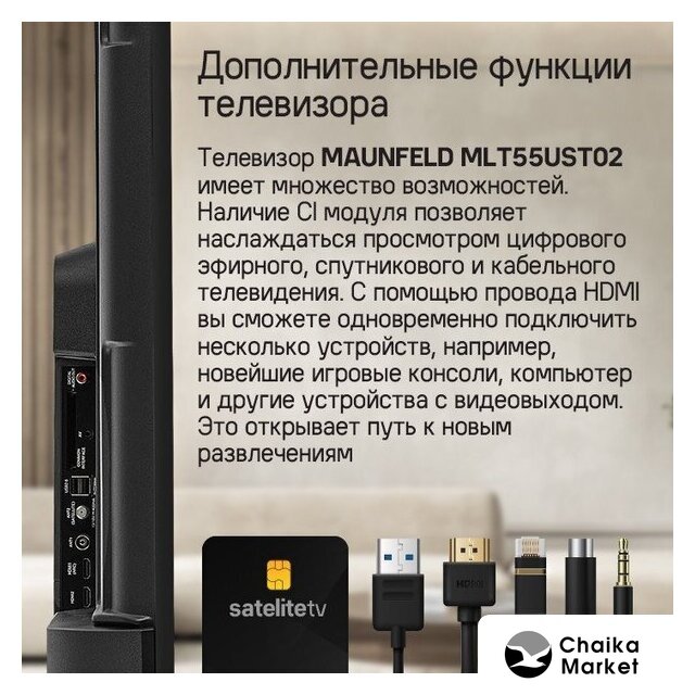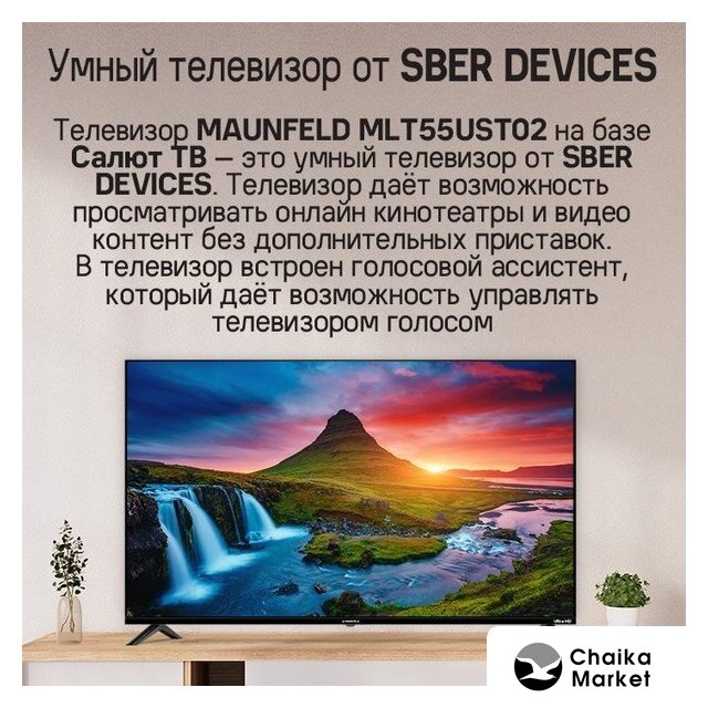 55" 3840x2160 (4K UHD), частота матрицы 60 Гц, Smart TV (Android), Wi-Fi