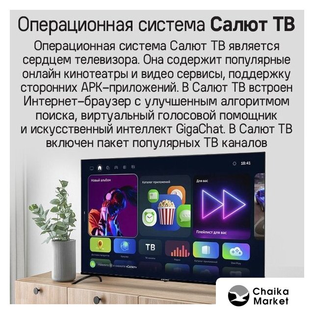 75" 3840x2160 (4K UHD), матрица VA, частота матрицы 60 Гц, Smart TV (Google TV), HDR10, Dolby Vision, Dolby Atmos, Wi-Fi, смарт пульт
