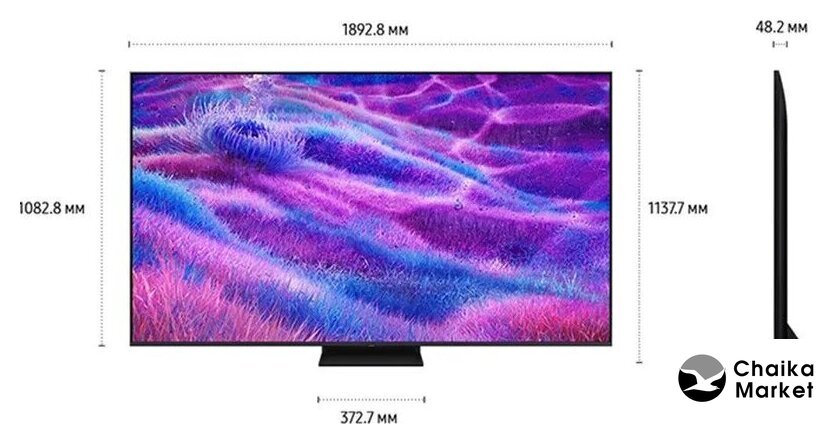 65" 7680x4320 (8K UHD), матрица VA, частота матрицы 120 Гц, Smart TV (Samsung Tizen), HDR10, HDR10+, HLG, Dolby Atmos, AirPlay, Wi-Fi, смарт пульт