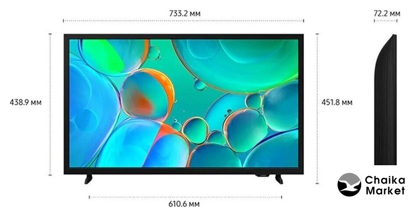 32" 1920x1080 (Full HD), частота матрицы 60 Гц, Smart TV (Samsung Tizen), HDR10, HDR10+, AirPlay, Wi-Fi