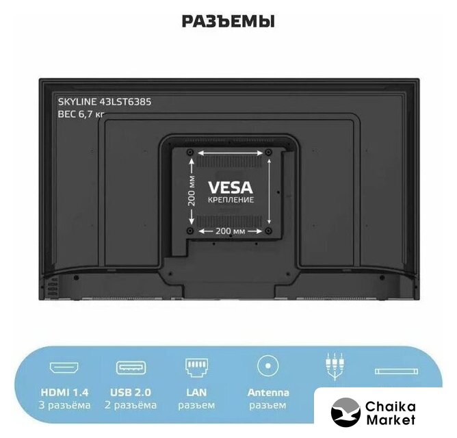 43" 3840x2160 (4K UHD), частота матрицы 60 Гц, Smart TV (Яндекс.ТВ), Wi-Fi, смарт пульт