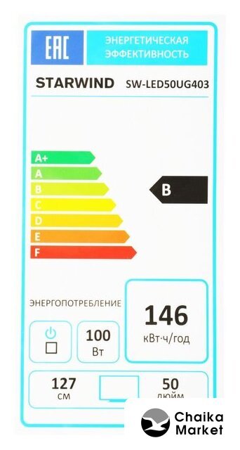 49.5" 3840x2160 (4K UHD), матрица TN+Film, частота матрицы 60 Гц, Smart TV (Салют ТВ), Wi-Fi, смарт пульт