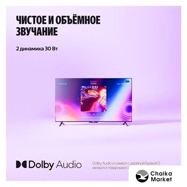 43" 3840x2160 (4K UHD), матрица VA, частота матрицы 60 Гц, Smart TV (Google TV), HDR10, HLG, AirPlay, Wi-Fi, смарт пульт