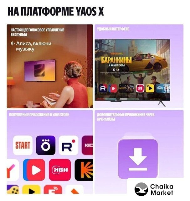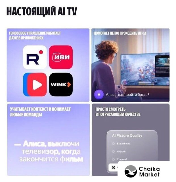| Оригинальные функции | Yandex AI Picture Quality, Yandex Picture Quality, Yandex AQ, MEMC |