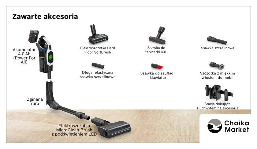 вертикальный/вертикальный моющий, аккумулятор, мощность всасывания: 90 Вт, потребление: 500 Вт, регулировка мощности, турбощетка, станция для хранения с самоочисткой и зарядкой, шум 83 дБ