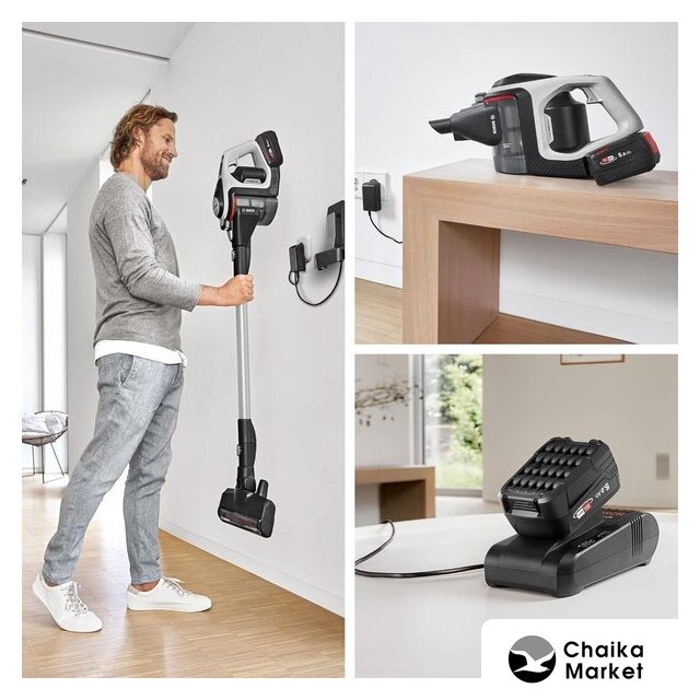 вертикальный/вертикальный моющий, аккумулятор, мощность всасывания: 90 Вт, потребление: 500 Вт, регулировка мощности, турбощетка, станция для хранения с самоочисткой и зарядкой, шум 83 дБ