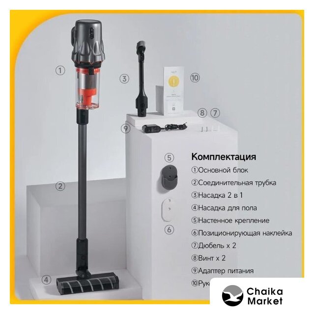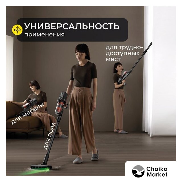 вертикальный 2-в-1, аккумулятор, без регулировки мощности, турбощетка, док-станция без зарядки, шум 72 дБ