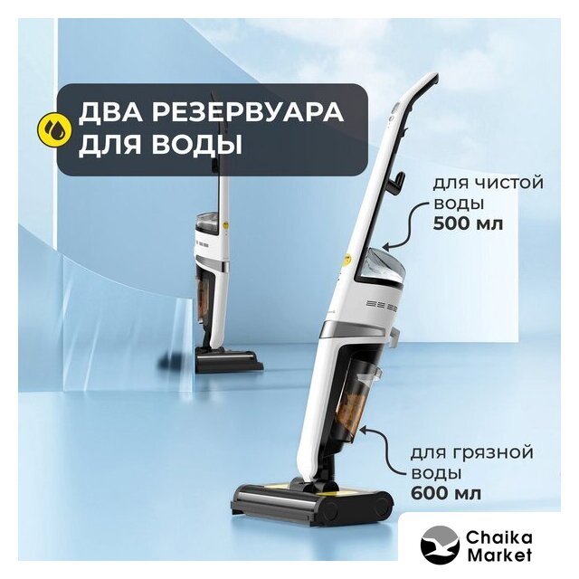 вертикальный с влажной уборкой, аккумулятор, без регулировки мощности, шум 80 дБ