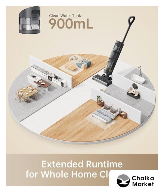 вертикальный моющий, аккумулятор, потребление: 300 Вт, регулировка мощности, турбощетка, док-станция с самоочисткой и зарядкой, шум 82 дБ